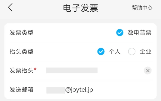 - 個人名義の発票が対象です。後でアップロードするシステムに登録されているのと同じ名前(通常はパスポートのローマ字の氏名)で発行する必要があります。